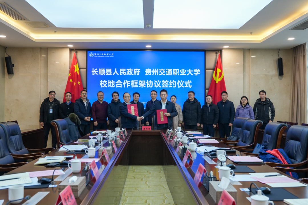 刘雁和刘刚代表双方签署校地合作框架协议,双方聚焦长顺县园区产业与学校优势学科,在低空经济、智能制造、道路交通等领域达成深度合作意向,未来将围绕合作办学、育人、就业、发展等内容展开进一步合作。