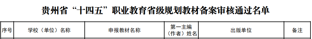 近日,教育部与贵州省教育厅相继公布“十四五”职业教育国家及省级规划教材遴选结果,我校教材建设工作取得重要进展,共4部教材入选“十四五”职业教育国家规划教材,11部教材拟通过省级验收。