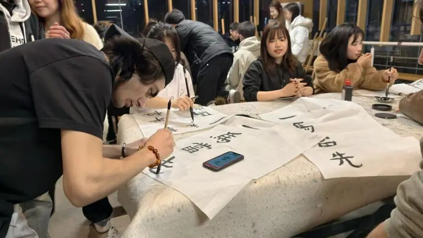 近日,由国际教育学院主办,学校外语协会、骄苑书画协会联合协办的中外学子书法文化交流活动圆满举行。本次活动以汉字为媒介、以笔墨为桥梁,汇聚中外学子共赴文化之约,在沉浸式体验中感悟中华文脉的深厚底蕴,进一步涵养了开放多元、薪火相传的校园文化生态。