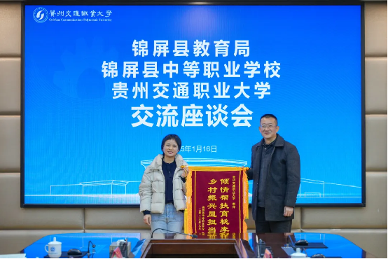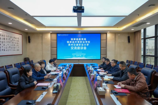 1月16日上午,锦屏县教育局党组书记、局长龙政樟,锦屏县中等职业学校校长郝文彬一行到我校交流,学院党委委员、副院长吴薇出席,信息工程系负责人、帮扶教师吴冠辰博士参加座谈。