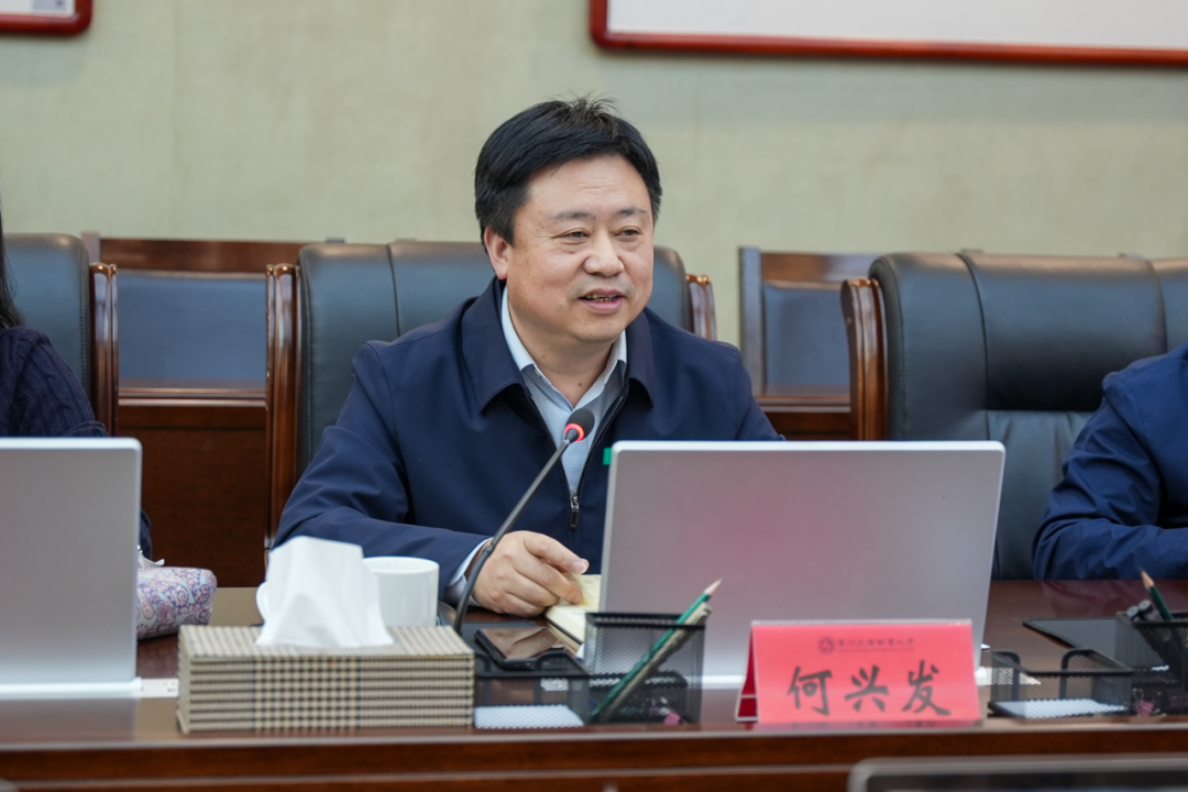 何兴发代表学校对蒋国云一行的到来表示热烈欢迎,并简要介绍了学校从高水平高职院校向职业本科大学转型发展的进程、面临的机遇与挑战。他表示,面向未来产业变革,学校正积极推进前瞻性布局,着力推进“三个未来”学院建设,不断夯实发展基础。贵州铁投集团与我校同属交通血脉,肩负着服务贵州现代化综合交通运输体系建设的共同使命。期盼双方以此次交流为契机,在人才培养、科技攻关、平台共建等方面开展实质性、深层次合作,推动校企协同育人,实现互利共赢,共同为贵州交通事业高质量发展注入新动能。