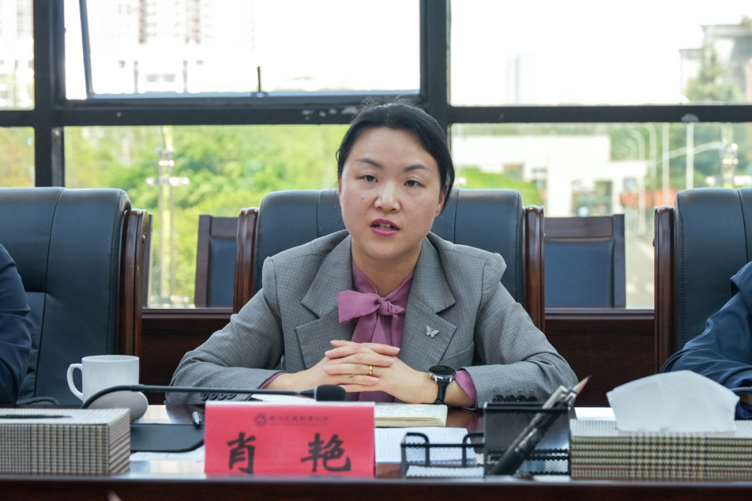 肖艳高度评价了我校办学特色和办学成果,结合湄潭县茶产业发展及湄潭县中等职业学校办学实际,代表湄潭县中等职业学校提出深化“3+4”中本贯通培养、共建茶产业智能装备产业学院、共建“双师双能”师资互通机制、共建全过程育人管理机制、共建“茶叶+”乡村振兴服务团队等方面的合作意愿。她表示,职业教育是推动产业转型升级的重要力量,希望通过强化贵州交通职业大学与湄潭县中等职业学校之间的紧密合作,助力县域经济高质量发展。