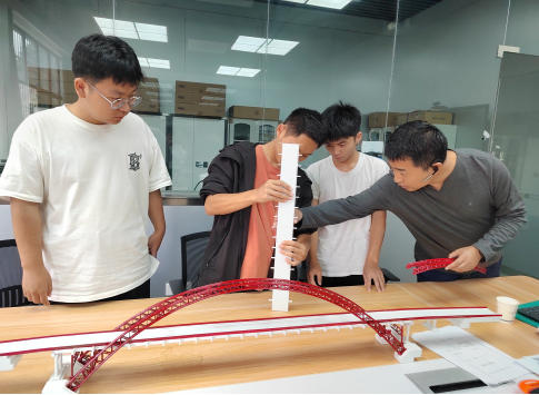 学生对“花鱼洞一号”大桥大长度部件横向变形问题进行讨论