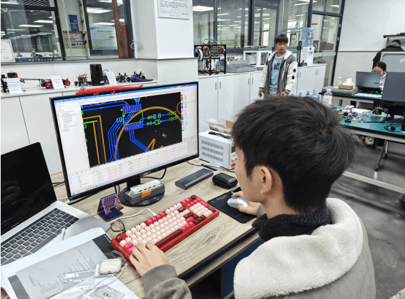 同年10月,广东合赢教育科技有限公司到贵州交职院现场实地考察机电类专业的项目制学习小组建设,当即决定将公司部分产品开发任务移交给学院,并签订了“成套汽车电子积木实训板及汽车轮速滑移率模拟装置”开发合同。如今寒假已至,校园内仍有25名学生留校参与该项目的开发工作。