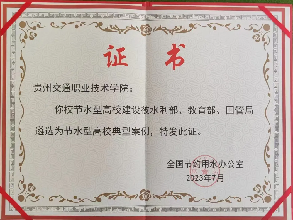 贵州交通职业技术学院(现贵州交通职业大学)节水型高校建设被遴选为节水型高校典型案例