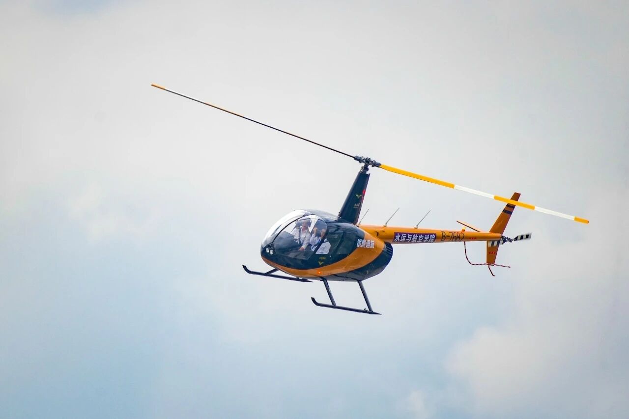 首先登场的是来自贵州银鹰通用航空有限公司的罗宾逊R44雷鸟II型直升机。这款最大起飞重量1.13吨、可乘坐4人的直升机,巡航时速达160km/h,在飞行培训、航空测绘、应急救援等领域有广泛应用。