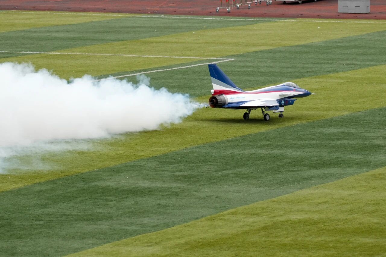 紧接着,歼10、歼20模型亮相。这些精致的航模不仅完成了360°旋转、720°旋转和落叶漂等高难度动作,还拉出了“水运与航空学院欢迎2025级新同学”的温馨条幅,将现场气氛推向高潮。