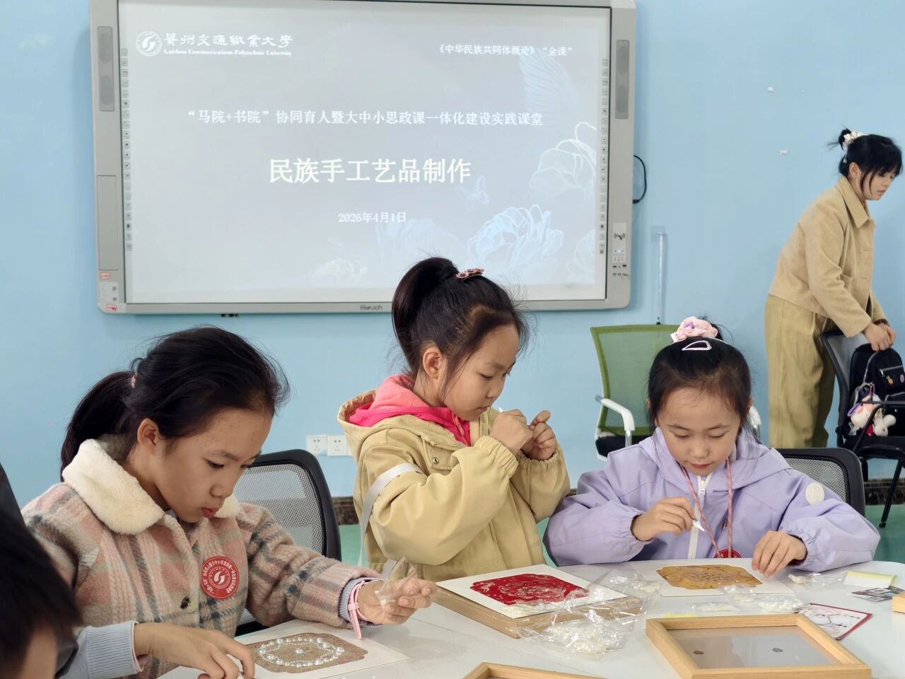 依托“马院+书院”协同育人暨大中小学思政课一体化建设实践课堂,学校组织教职工子女走进“大思政”实践教学基地,在交通红色场馆讲解、民族文化体验、模拟法庭、红色游戏等特色课程中,让小朋友们在“行走的思政课”与“场馆思政课”里,赓续中华文脉,传承红色基因。