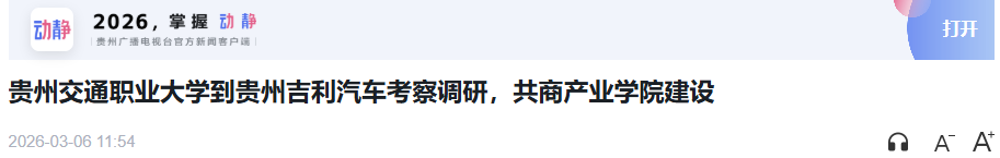 3月4日,贵州交通职业大学党委书记何兴发,党委常委、副校长田兴强率队赴贵州吉利汽车制造有限公司考察调研并围绕吉利汽车新能源产业学院建设交流座谈,与贵州吉利汽车制造有限公司总经理刘铁江及相关负责人精准对接人才需求,推动产业学院建设落地落实。