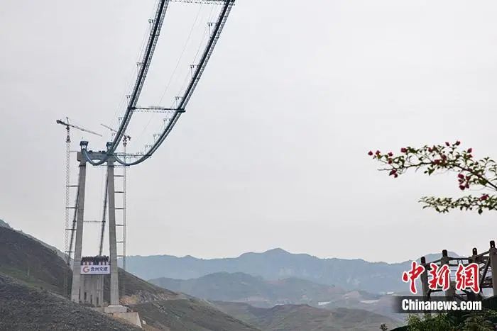 在建设中的纳(纳雍)晴(晴隆)高速上,一座重点控制性工程——牂牁江大桥,正在紧锣密鼓地施工当中。贵州交建集团子集团贵州公路集团纳晴15标项目负责人赵明富在施工现场向中新网记者介绍,牂牁江大桥横跨贵州晴隆、普安、水城、六枝等4县(区)交界。“建成后,两岸路程将由现在的1小时缩短为1分钟。天堑变通途,带动地方经济发展。”
