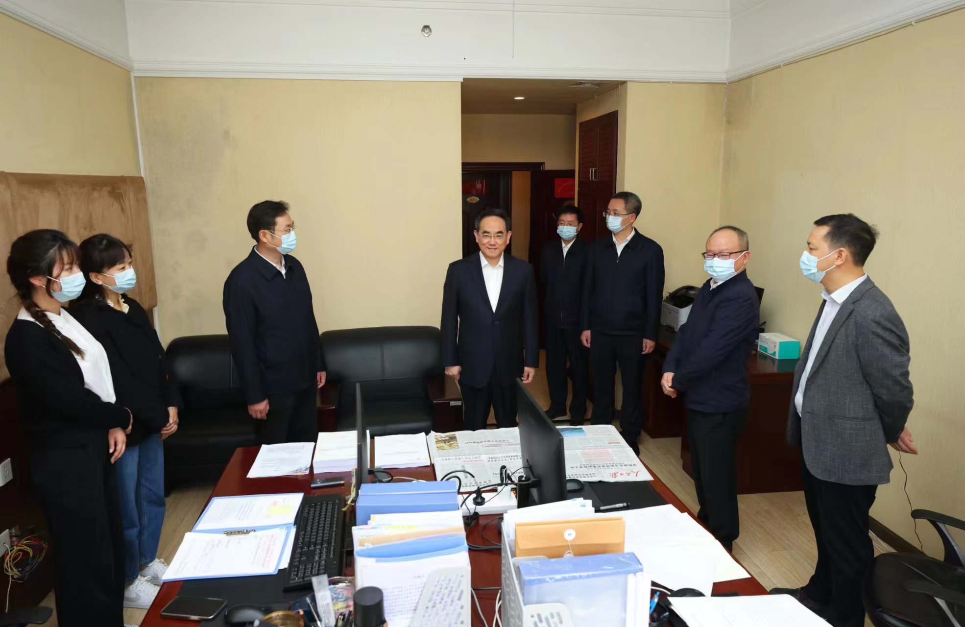 徐麟先后来到省委主题教育领导小组办公室指导协调组、整改整治组、宣传组、综合组、材料简报组和联络服务组集中办公场所,亲切看望工作人员,详细了解办公室各职能小组职责分工、力量配备、工作开展等情况。他说,我省主题教育启动以来,省委主题教育领导小组办公室充分发挥职能作用,完善机制、充实力量,有力推动了全省主题教育顺利开展,取得积极成效。大家要进一步充分认识肩负的光荣职责使命,从严从实、全力以赴完成好主题教育各项工作任务。