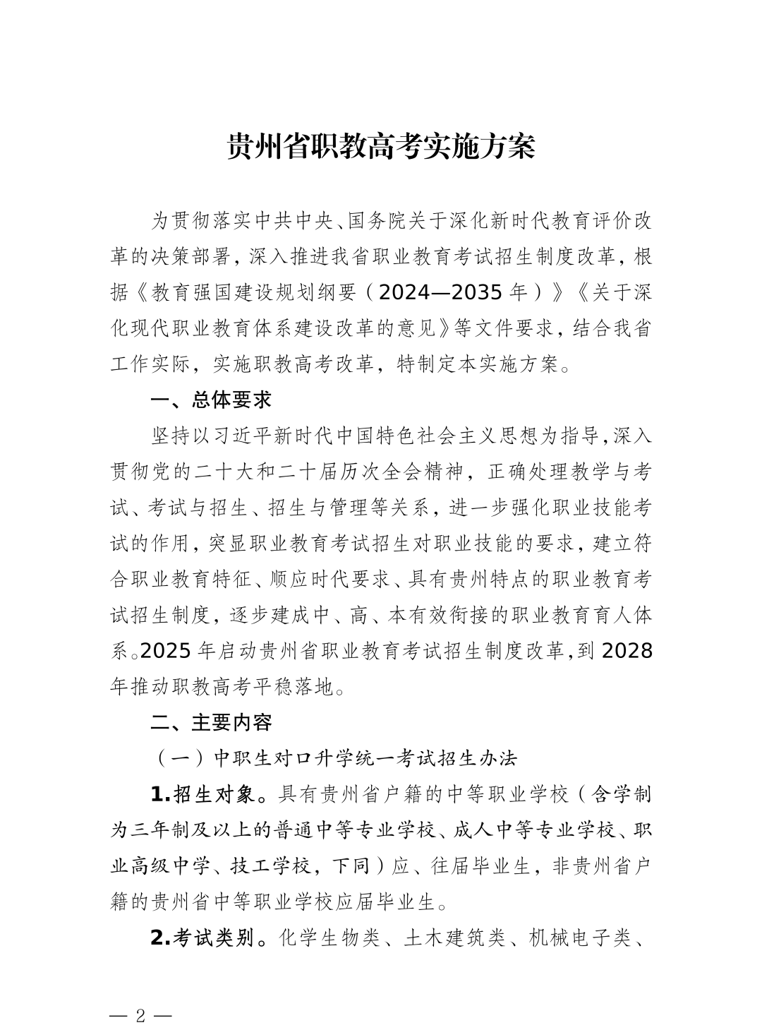 以下为《贵州省职教高考实施方案》全文: