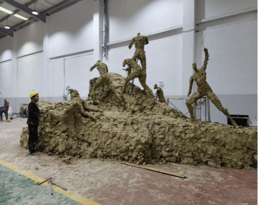 无论是在行业市场还是在教育,基地一直都在践行习近平总书记对职业教育工作作出的重要指示:深化产教融合、校企合作,深入推进育人方式、办学模式、管理体制、保障机制改革。形成了机制灵活、产出高效的人才培养与技术创新平台。基地团队由校内教师8名,公司派驻大师工匠15名共同组建而成。团队引进贵州牙舟陶器烧制技艺、泥塑技艺等非遗传承人3名,聘请行业艺术顾问、文化顾问及党史顾问,结合贵州民族非遗文化、革命文化,树文化自信,传工匠精神,先后承接了2020年北京世界园艺博览会贵州馆微景观的设计与施工、长征国家文化公园——老鸭山遵义战役纪念园雕塑整体规划设计、长征国家文化公园——渝黔高速大娄山服务区交通景观雕塑整体规划设计等交旅融合、文旅融合项目10余项,年产值近1000万元。