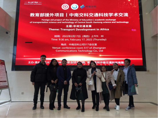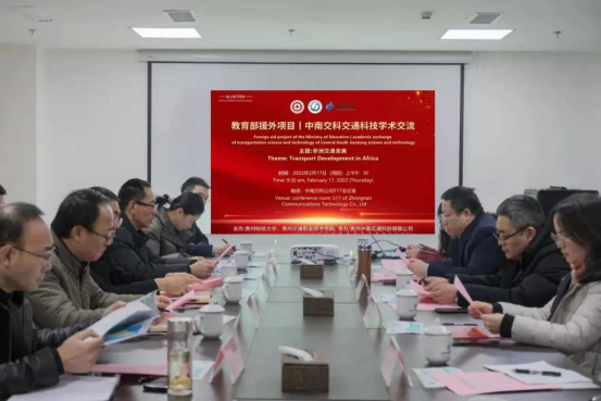 2月17日,由贵州财经大学、贵州交通职业技术学院主办,贵州中南交通科技有限公司承办的教育部援外项目——“非洲交通发展”中南交科交通科技学术交流会拉开帷幕。贵州交通职业技术学院党委副书记刘正发,贵州财经大学公共管理学院党委书记廖承红,贵州交通经济技术研究院院长、中南交科公司人才基地负责人赵光辉教授,中南交科公司党委书记、董事长吴树森,党委副书记、副董事长、总经理王小波等专家和国际学生们参加会议。会议由赵光辉主持。