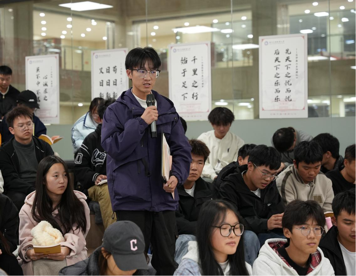 最后,活动进入交流环节,气氛热烈。同学们纷纷结合自身的专业学习和现实生活分享了对《大学》的感悟,将内在德性修养与外在社会紧密结合。思想的碰撞,使得古老的智慧在当代的语境中被重新激活,焕发出蓬勃生机。
