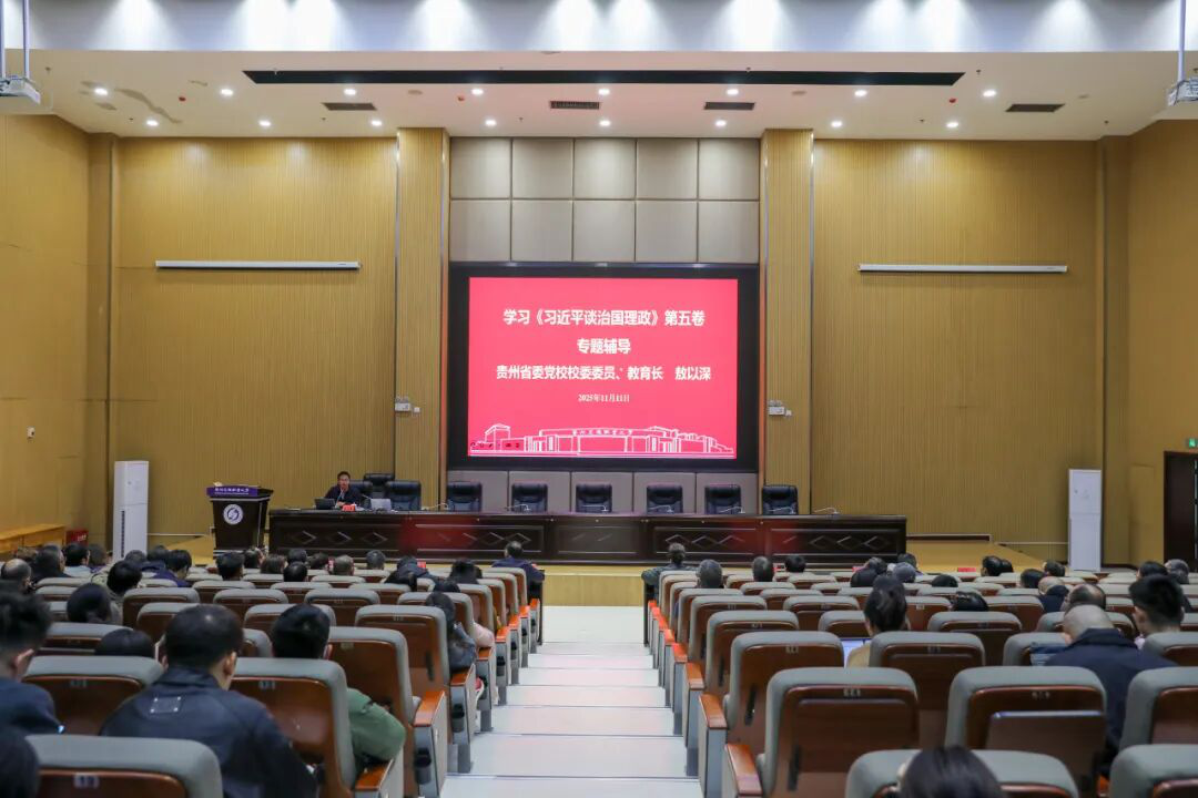 当日下午,贵州省委党校校委委员、教育长敖以深教授到校开展学习《习近平谈治国理政》第五卷专题辅导。