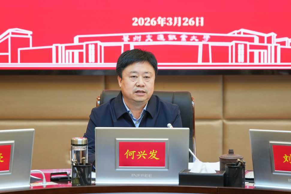 何兴发指出,开展树立和践行正确政绩观学习教育,是党中央作出的重大部署,也是学校办好交通特色职业本科教育的根本遵循。要提高政治站位,以正确政绩观校准办学航向。要深刻把握“政绩为谁而树、树什么样的政绩、靠什么树政绩”这一根本性问题,从国家战略、区域发展和行业需求,研究职业本科大学建设规律、人才成长规律、科学研究规律、产教融合规律,牢牢守住职业本科大学的职教属性、行业属性、产业属性,切实解决好“培养什么人、怎样培养人、为谁培养人”这一根本问题,把为民造福、师生满意、社会认可作为最大政绩。要聚焦主责主业,以正确政绩观推动高质量发展。要坚守职业本科定位,坚持“三个不变”,做到“升不忘本、转不离本”,坚守“三个服务”初心,构建“六向融入”格局。围绕贵州交通智能化、网联化、绿色化、共享化的转型需求做优交通基建类专业群,做强“人工智能+交通装备”类专业群,做特交旅融合类专业群,做精铁运、水运、空运等交通运输服务类专业群,以“三个未来”为核心驱动,打造交通底色鲜明、职教特征突出的办学品牌,以服务国家战略、助力地方发展的实干实绩,彰显交通类职业本科院校的时代担当,创造经得起实践、师生和历史检验的政绩。要强化系统思维,以正确政绩观抓实抓细“十五五”规划落地见效。要坚持长远谋划,立足学校“十五五”发展规划,聚焦专业建设、师资队伍、产教融合等关键领域和薄弱环节,以钉钉子精神推动既定目标、重点任务、重大项目落地见效,推动学校内涵建设实现从“量的积累”向“质的飞跃”转变。
