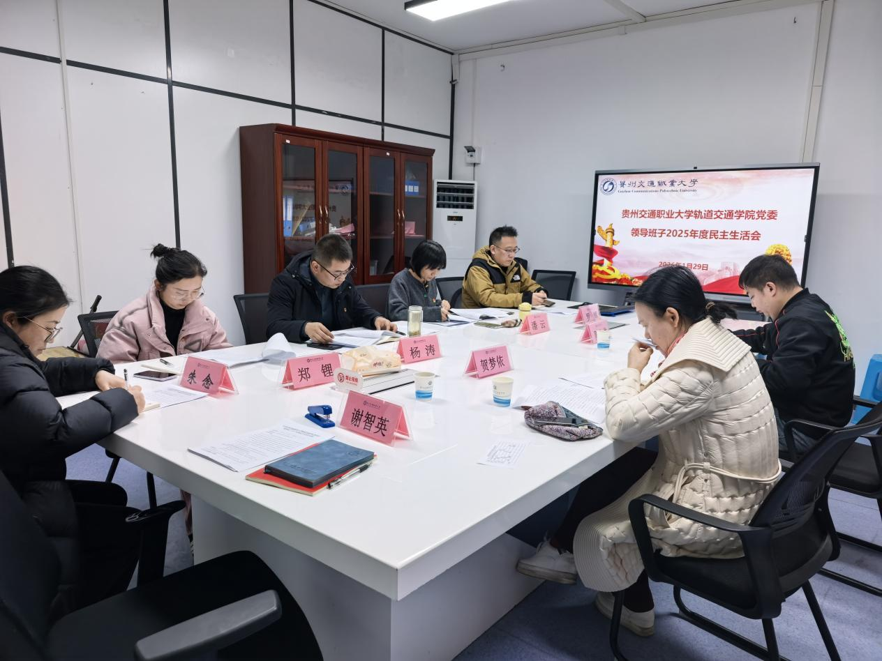 2026年1月29日下午14:30,轨道交通学院2025年度领导班子民主生活会在学院五楼会议室召开。会议由学院党委书记杨涛主持,学院党委领导班子成员、教师代表参会,学校党委委员、副校长贺梦依同志及组织部工作人员到会指导。