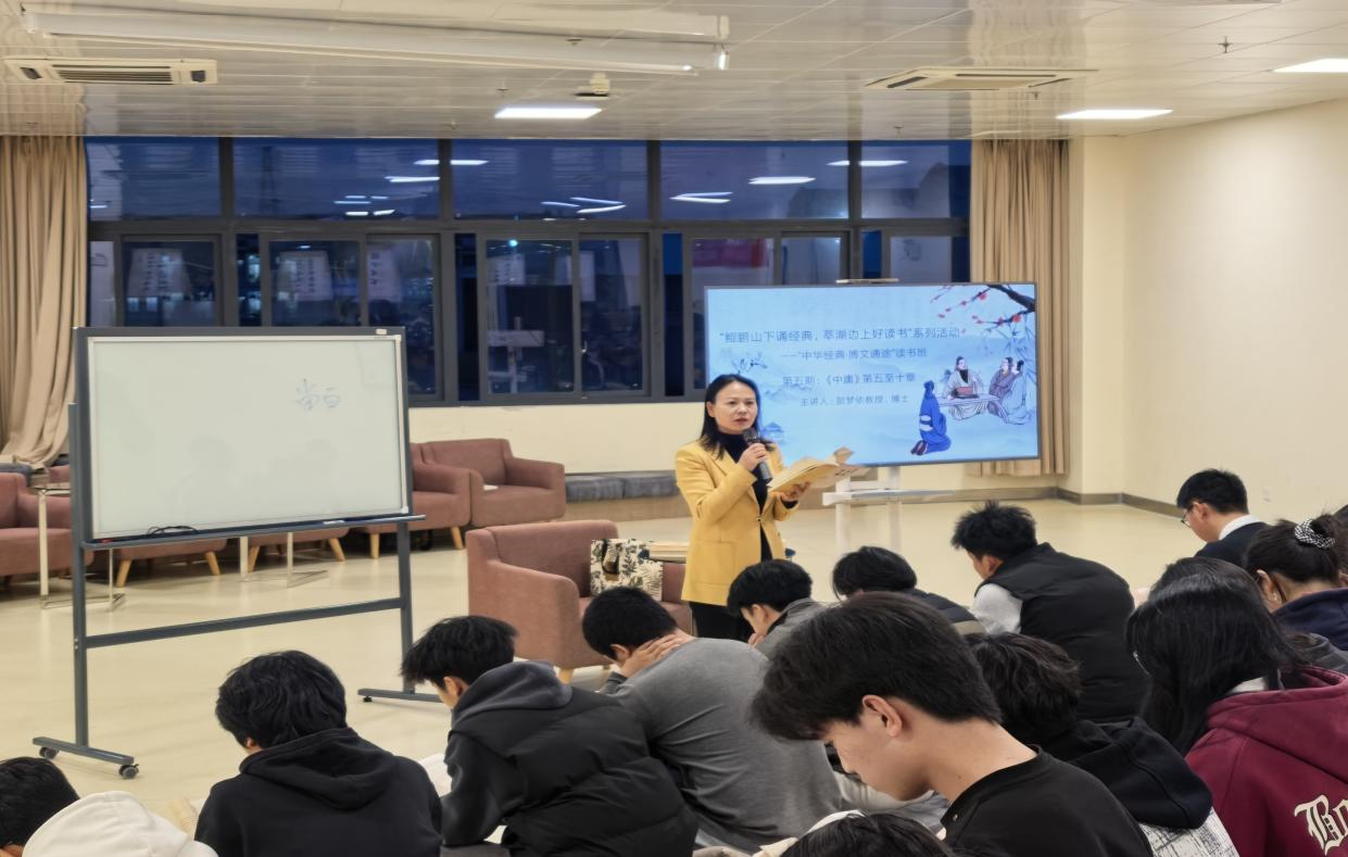 12月29日,由省级语言文字推广基地(贵州交通职业大学)主办,通识教育学院与图书馆联合承办的“中华经典·博文通途”读书班第四期活动在文化千岛艺术馆举行。贵州交通职业大学副校长、教授、博士贺梦依继续带领师生共读《中庸》前四章,开展一场关于“中和之道”与当代人格养成的思想对话。“中华经典·博文通途”读书班第四期开场贺梦依首先回顾了《大学》从三纲领到八条目的核心脉络,从而引出《中庸》。她指出《中庸》思想是《大学》...