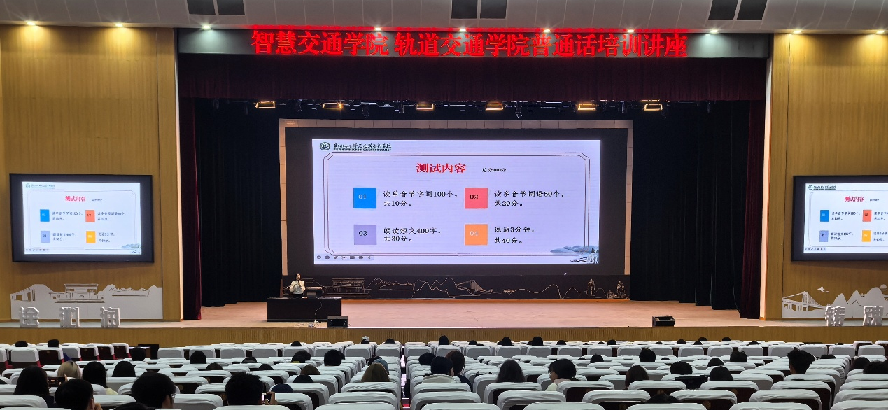 为全面提升新生普通话水平与语言文字应用能力,夯实职业素养根基,近日,贵州交通职业大学特邀贵阳幼儿师范高等专科学校国家级普通话测试员肖健和卢倩老师,为全校大一新生开展了系统化普通话培训。本次培训由省级语言文字推广基地(贵州交通职业大学)主办,通识教育学院承办,培训共设五期,覆盖近五千名新生。语言是沟通的桥梁,是职业能力的核心组成部分。对于未来将投身于交通强国建设一线的学子而言,掌握标准、流利的普通话,...